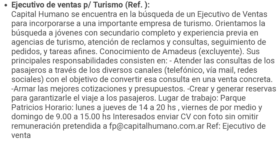Ejecutivo de Ventas para Turismo – Parque Patricios turihelp13 agosto, 201823 agosto, 2019Sin categoría Navegación de entradas AnteriorSiguiente Comparte esto: Compartir en Facebook (Se abre en una ventana nueva) Facebook Email a link to a friend (Se abre en una ventana nueva) Correo electrónico Compartir en WhatsApp (Se abre en una ventana nueva) WhatsApp Me gusta Cargando...
