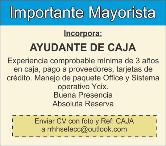 Importante operador mayorista busca ayudante de Caja- Buenos Aires